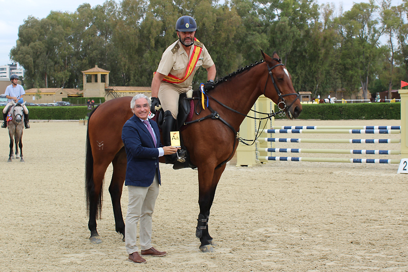 La víspera se corrió además en Carmona el Campeonato de España Militar en la disciplina de Raid, sobre una distancia de 80 km. La medalla de bronce, con premio también para Mejor Anglo-árabe de la prueba, fue para Jíbaro 38,49%, un hijo también de In Blue 28,83% y Samyra de doce años de edad, al que compitió el Guardia Civil Francisco Jesús Ruiz González. El Director Técnico de AECCAá, José María Parias, fue el encargado de entregar el galardón.
